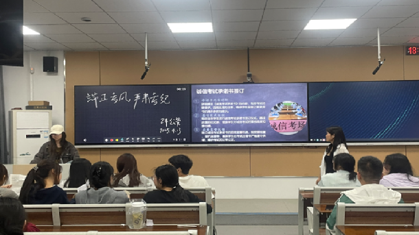 为进一步加强考风考纪建设,引导学生树立正确考试观念,营造公平公正、诚实守信的考试氛围,2025 年 4 月 13 日晚,437必赢会员中心437必赢会员中心,437必赢会员中心组织各班召开 “端正考风,严肃考纪” 主题班会,以严明纪律筑牢诚信防线,以优良考风涵养学生品行。